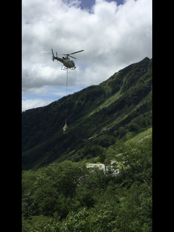 今日はヘリによる荷揚げの日、台風直撃の前に売り切れになっ...