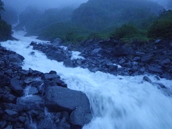 こんばんは、槍沢ロッヂです。 昨日から降り続いた雨は時折激...