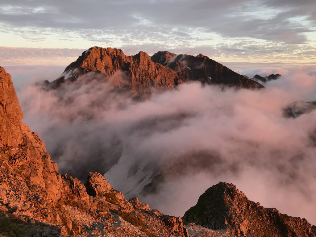 しかし、昨日の夕暮れはなかなか高得点の夕焼けが見れました。お泊りの方も期待以上の天気の中で大キレットを越えて、さらにきれいな夕焼け付きでしたから、まずますの登山を楽しめたことでしょう。