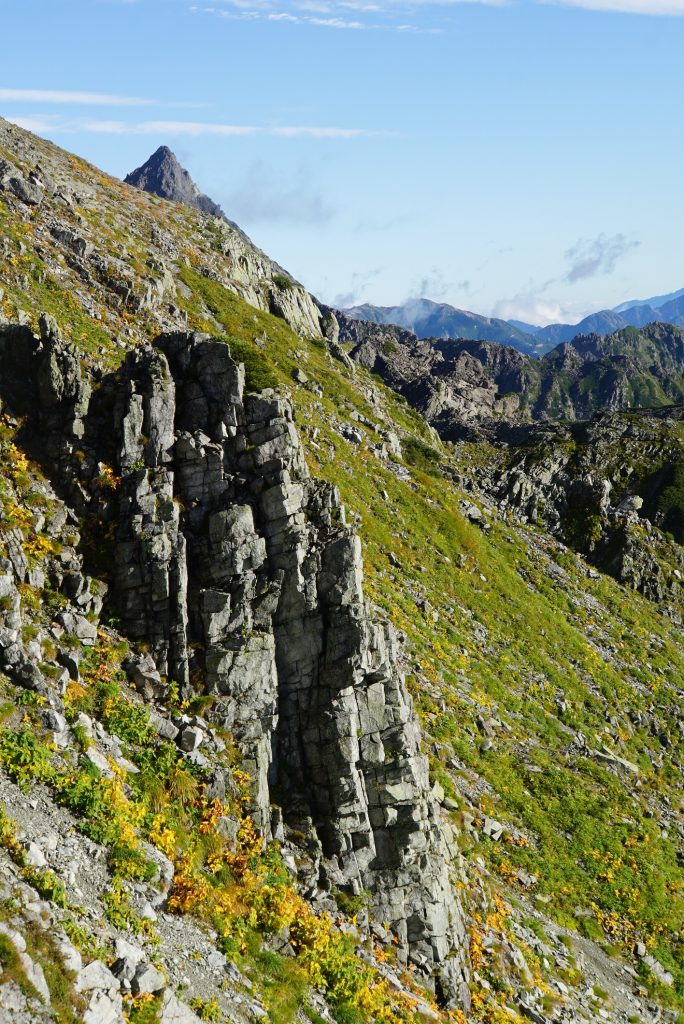 本谷カール内にも色付きがわずかに見え始め、小屋閉めの寂しさと紅葉が始まるワクワク感の入り混じる季節のはじまりです。