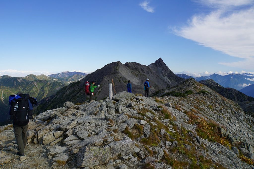 そんな大勢のお客さんは本日青空の下、大キレットや槍ヶ岳への稜線に歩を進めていきました。