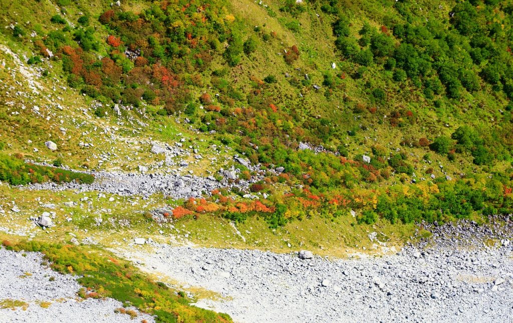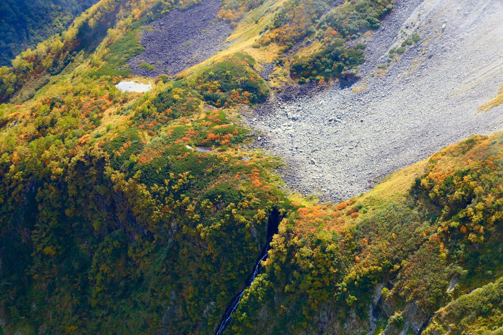 また、右俣カールの底も標高2500m付近のモレーン上で良い色になってきています。