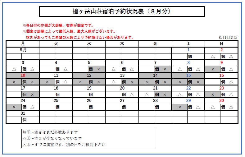 早速ですが、8月と9月の予約状況(あくまでも夕方の集計時点です)になります。