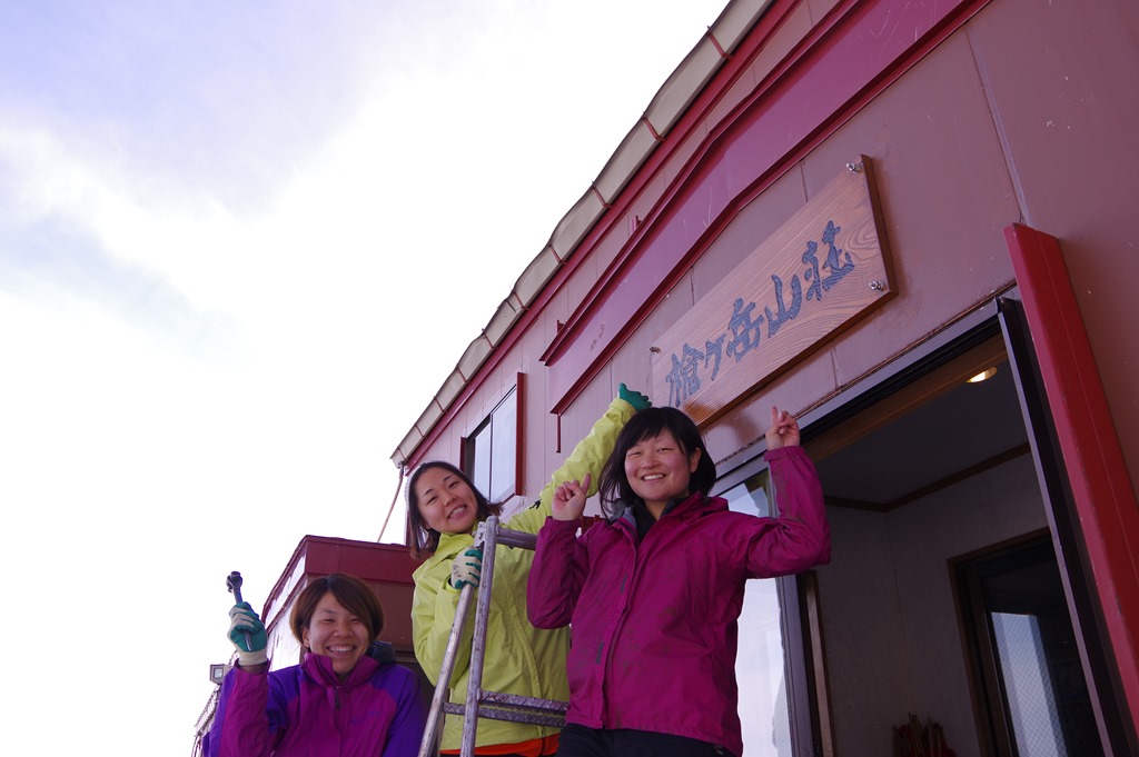今年は女性スタッフ陣が小屋の看板を取り付けました。 ...