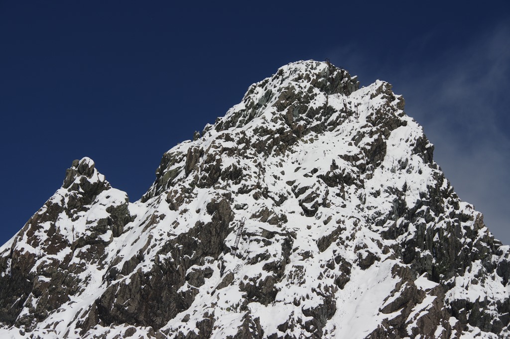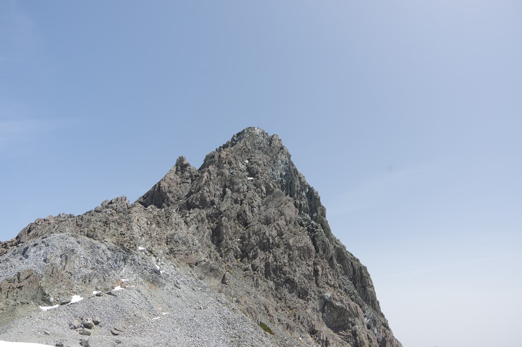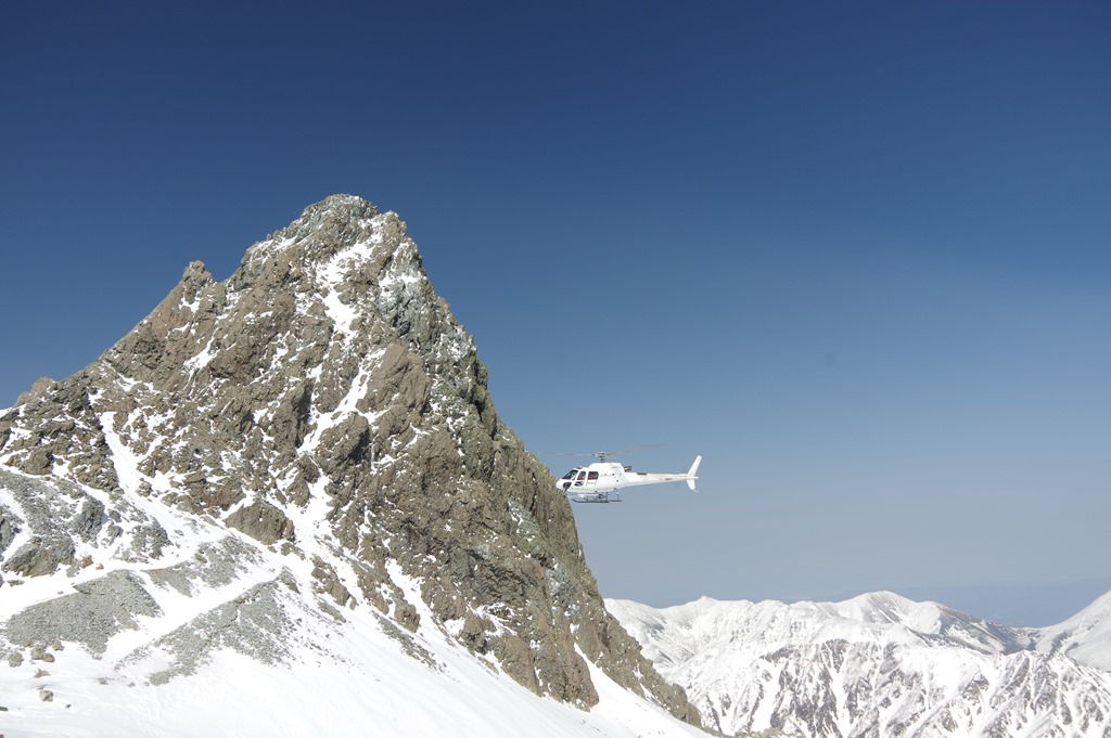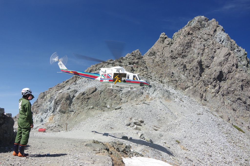 6月4日午後、快晴の槍ヶ岳に防災ヘリ「アルプス」が...