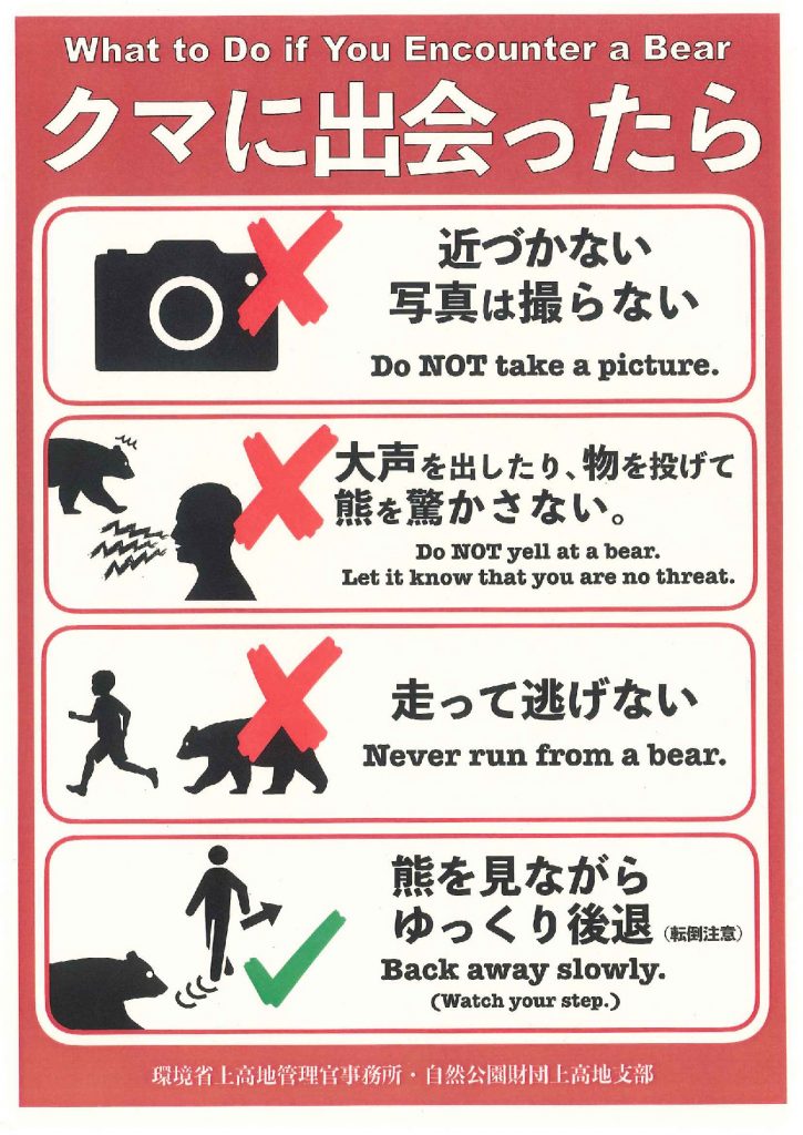 槍沢ロッヂのすぐ側やババ平付近での目撃情報もありますのでテント泊される方は十分にご注意ください!