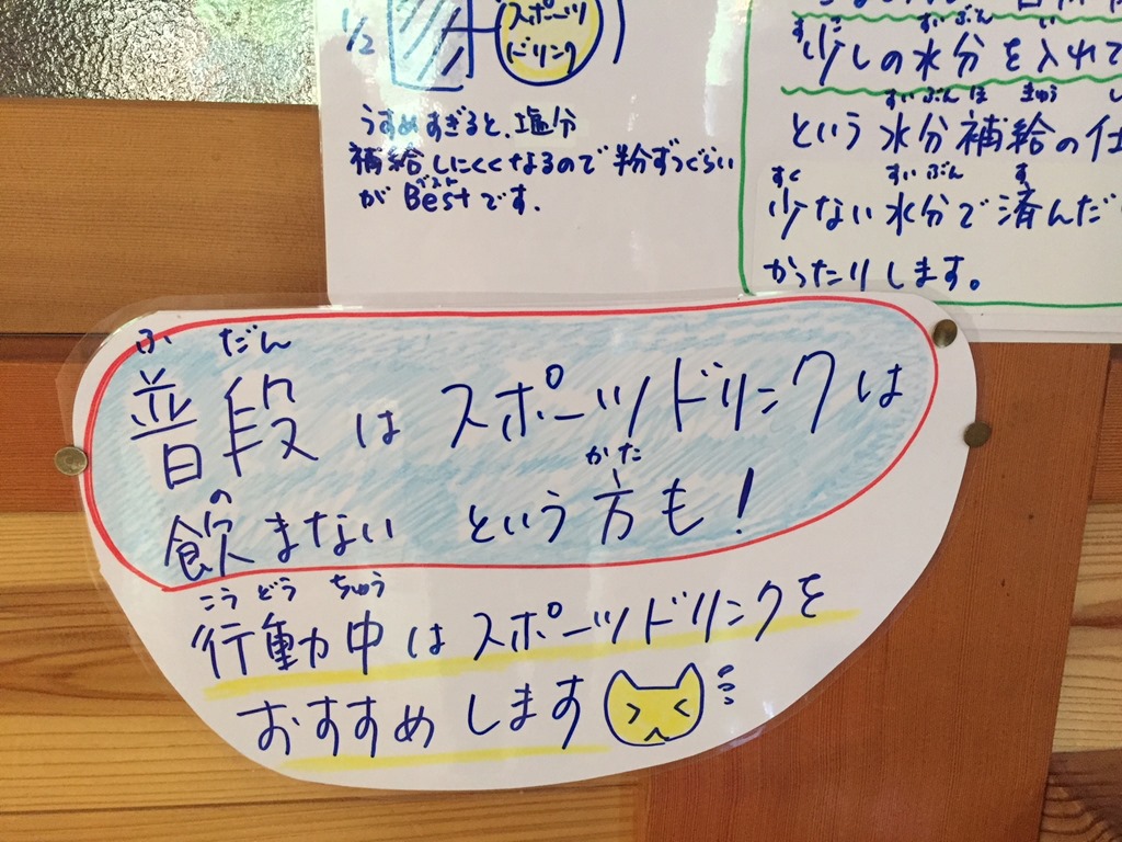 「スポーツドリンクを飲んで下さい!」と、しつこいくらいにお知らせしています。
