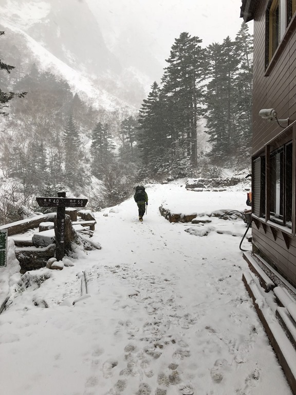そんなゴールデンウィークですが、後半には槍沢ロッヂにも雪が降り10cmほど積もりました。